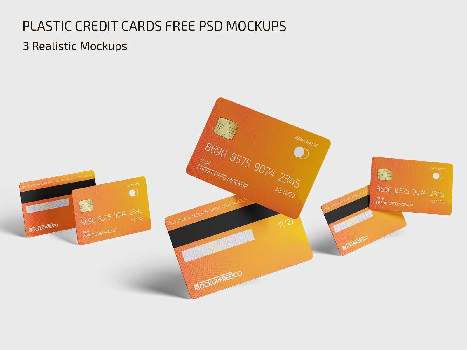 Floating & Gravity: Modern Floating Credit Card mockups that showcase your design in 3D space, perfect for hero headers and landing pages.
