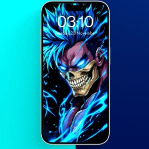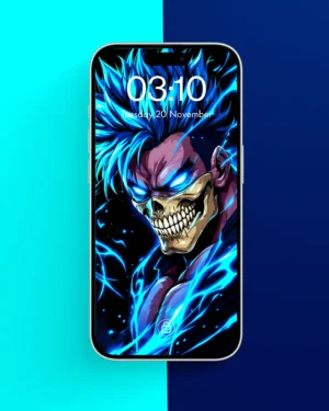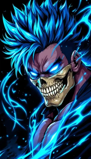 Unleash your inner strength with our Fierce Blue-Haired Anime Warrior Wallpaper designed specifically for iPhone devices. This striking wallpaper features a powerful anime warrior with vibrant blue hair and mesmerizing glowing eyes, creating an electrifying look that captures the essence of fantasy and adventure.