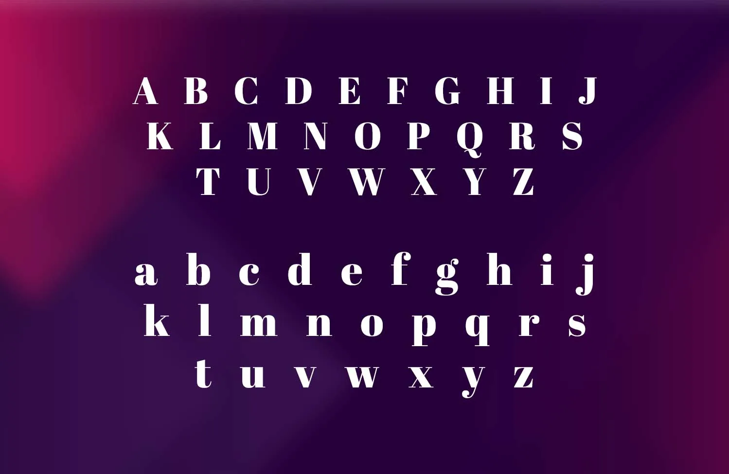 The font conveys a sense of boldness, sincerity, and competence. Its letterforms show high contrast and sharp detail, giving words a striking look. Wide curves balance the heavy vertical strokes, creating a sense of sophistication. At the same time, the font carries warmth through its rounded forms. This balance makes it stand out without losing readability.