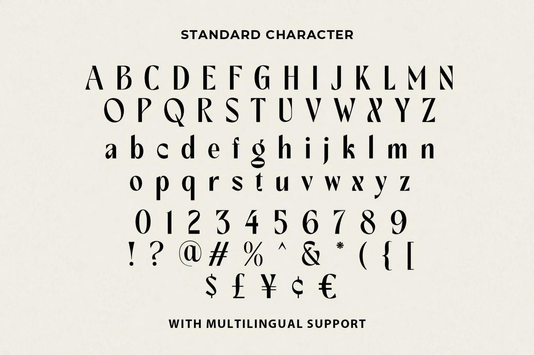 • Bold Character Design – Thick strokes and unique shapes ideal for display use