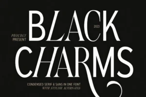 Black Charms is a versatile condensed font duo, combining a bold serif with a sleek modern sans-serif. Designed for impactful typography, this all-caps font duo includes an italic version for alternates, giving you flexibility in branding, editorial layouts, and creative projects. Whether you’re designing logos, headlines, packaging, or marketing materials, Black Charms delivers a powerful and sophisticated look.
