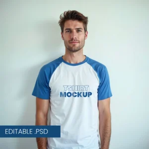 The Blue and White T-shirt mockup is not just a template; it’s a tool for transforming your designs into professional-grade visuals. The two-tone style offers versatility, making it suitable for various themes, from sporty to casual to corporate.