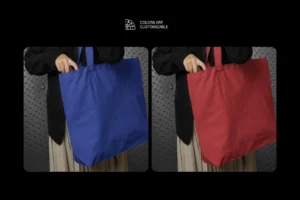 Download this Woman Tote Bag Packaging Mockup today and make your designs stand out with a chic and professional presentation!