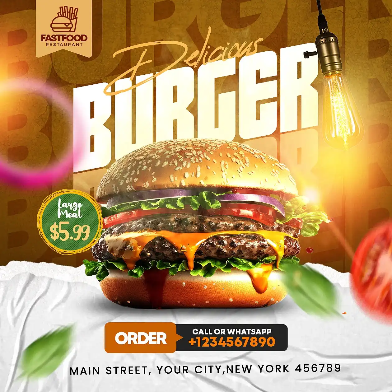 With its clean, modern design, this template allows you to showcase your food offerings in a visually appealing way, attracting and engaging your audience. Ideal for restaurant owners, food bloggers, or food delivery services, it helps you present your menu with clarity and style.