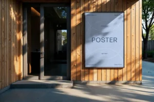 Step into a world where modern architecture meets thoughtful design. This Free A4 Outdoor Poster Mockup is not just another wall-mounted poster scene—it’s an experience. Crafted with realistic lighting, architectural contrast, and gallery-style elegance, this mockup sets your artwork in an ambient outdoor setting that feels part high-end design studio and part nature retreat.