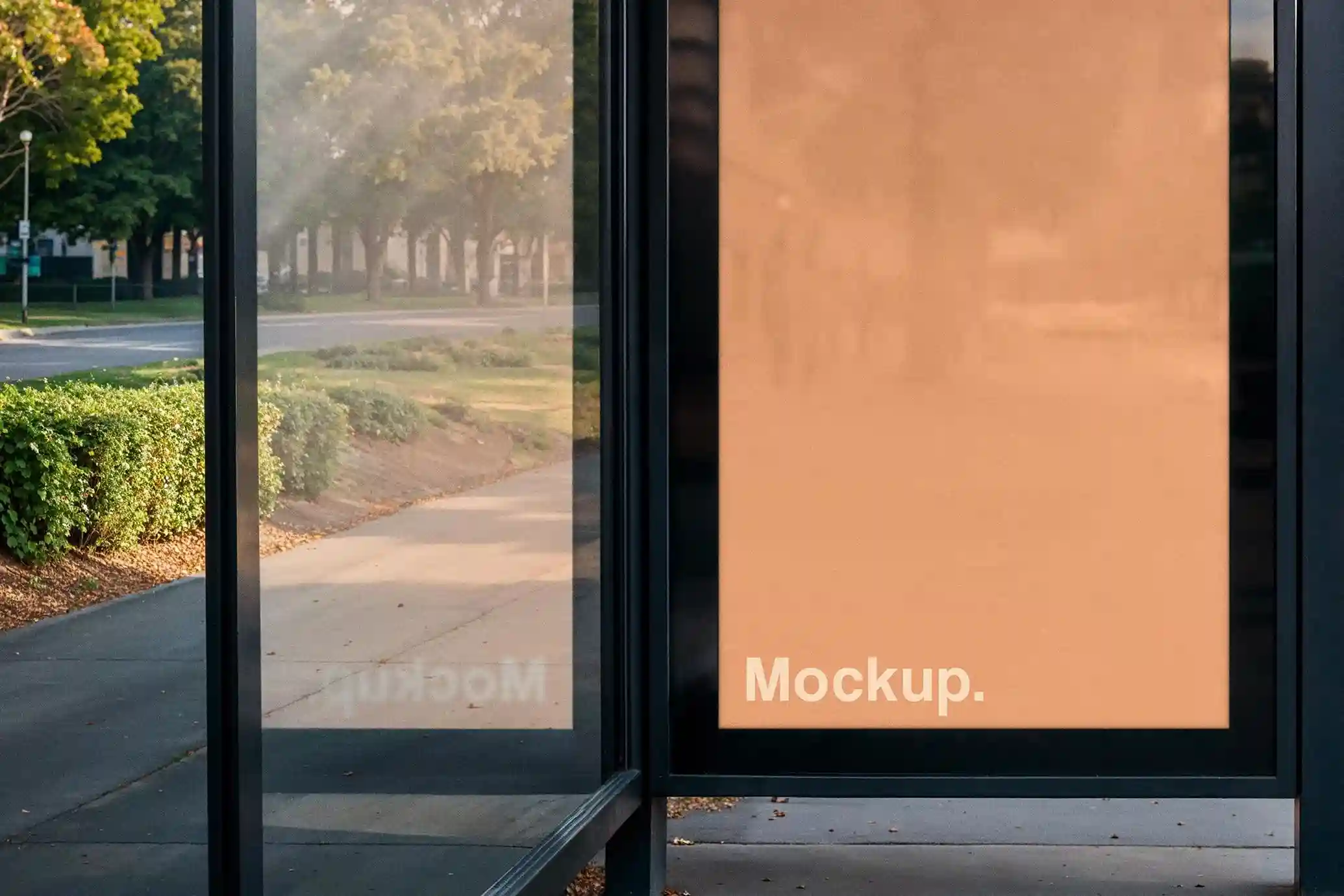 This mockup is captured in a calm suburban environment, making it ideal for brands that want to show their campaigns in real-world transit spaces. Whether you’re working on transit advertising, retail campaigns, or community awareness posters, this PSD template offers a smart way to preview and present your concepts.