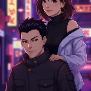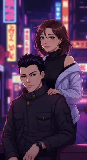 Bring a futuristic vibe to your screen with this Free Cute Anime Couple Wallpaper, featuring a stunning cyberpunk-style background. This high-quality anime wallpaper blends romance with neon-lit cityscapes, creating a visually striking and immersive look. Perfect for anime lovers who enjoy cyberpunk aesthetics and heartwarming moments.