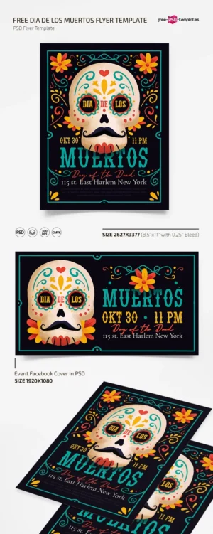 Download the Free Day of the Dead Poster Template PSD today and create eye-catching visuals that celebrate the beauty of this cultural tradition!