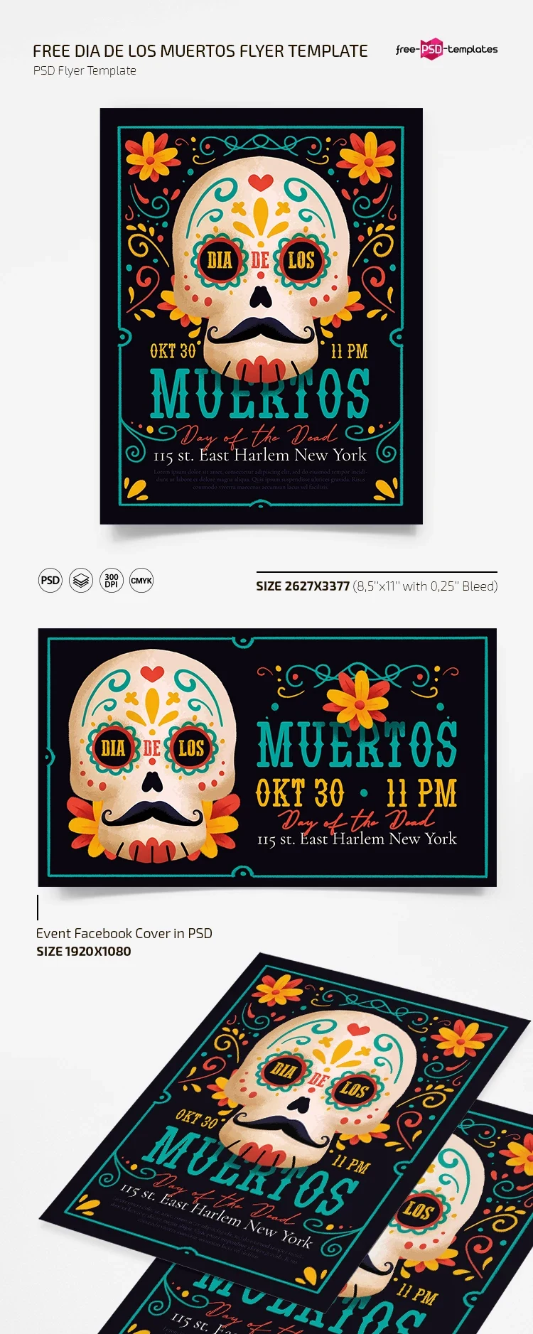 Featuring vibrant colors, traditional patterns, and intricate designs, this high-quality PSD template captures the essence of Día de los Muertos. Fully customizable and compatible with Adobe Photoshop, you can easily tailor it to match your event’s theme and branding.