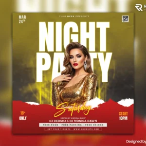 This DJ flyer is perfect for nightclubs, bars, and lounges hosting Saturday parties. It’s also great for electronic music events, DJ battle promotions, or themed nightlife events. If you’re promoting concerts, festivals, or special gigs, this flyer template makes your event look exciting and well-organized.