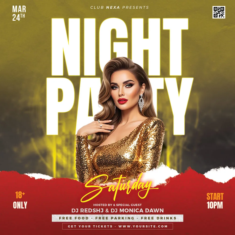 Your party deserves the best promotion. With this free DJ Saturday Night Party flyer template, you can create eye-catching event flyers without effort. Download it today, customize it in minutes, and get ready to fill the dance floor.