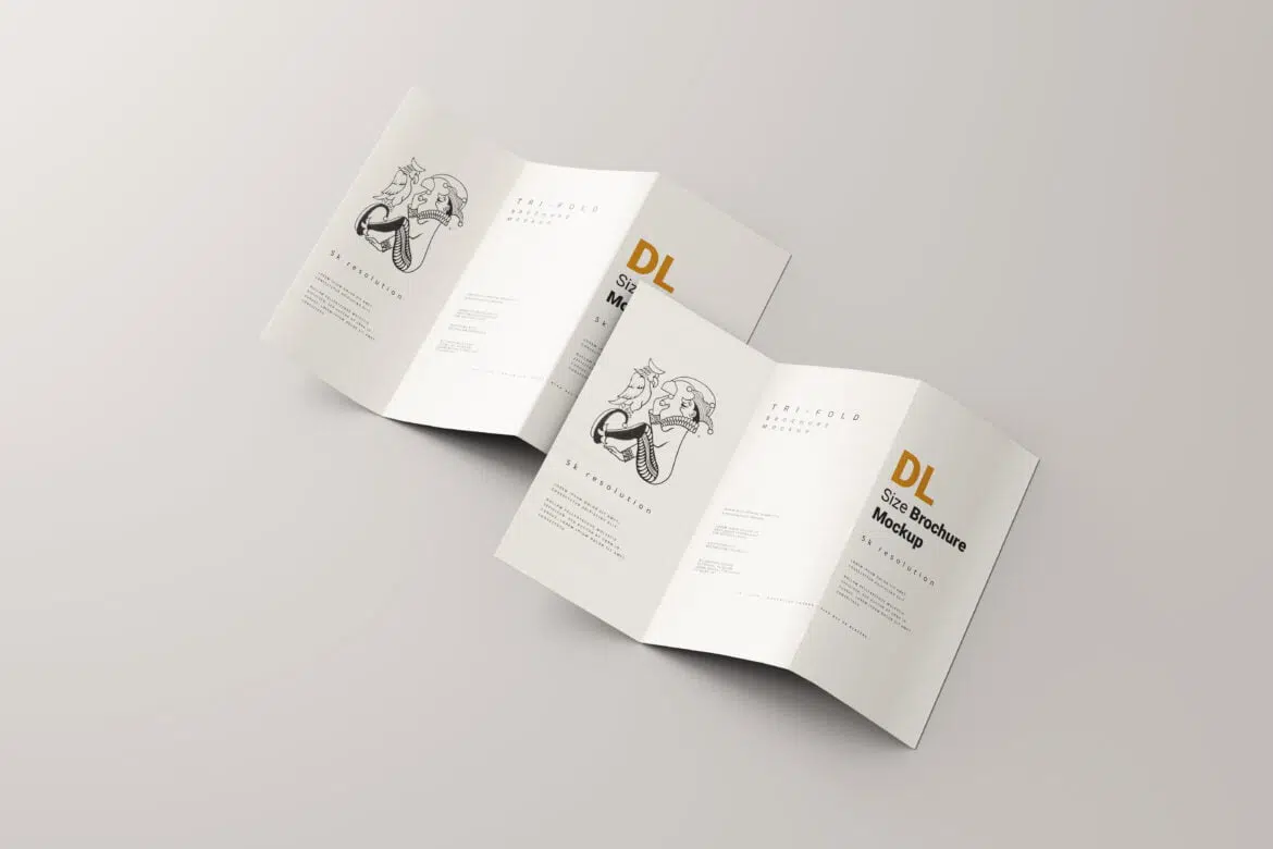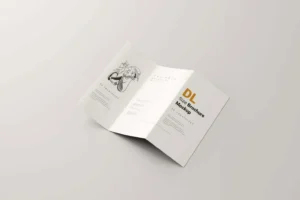 DL Size Perfection: Optimized for DL size brochures (99mm x 210mm), this mockup is especially useful for those creating business flyers, spa or hotel service menus, travel packages, restaurant offerings, or promotional tri-folds.