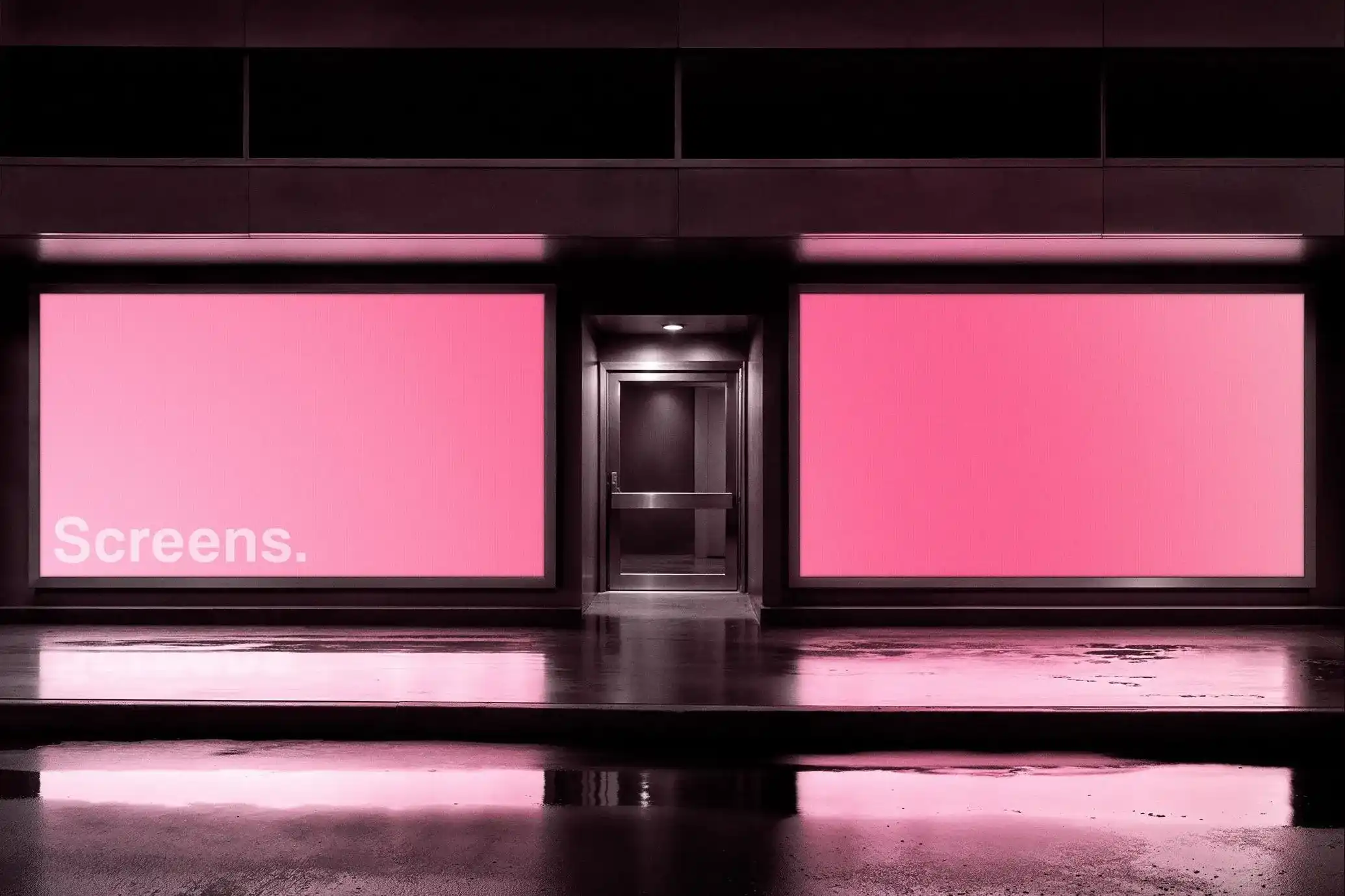 Give your designs a striking urban showcase with this Free Glowing Storefront Screens  Mockup. Crafted for modern brands and designers, this high-resolution mockup captures a futuristic storefront scene, complete with glowing display screens, soft cinematic reflections, and a moody night-time ambiance. Whether you’re promoting a tech product, digital campaign, or high-end brand, this mockup provides a powerful and immersive way to present your visuals.