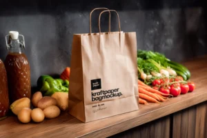 This kraft paper bag mockup works well for: