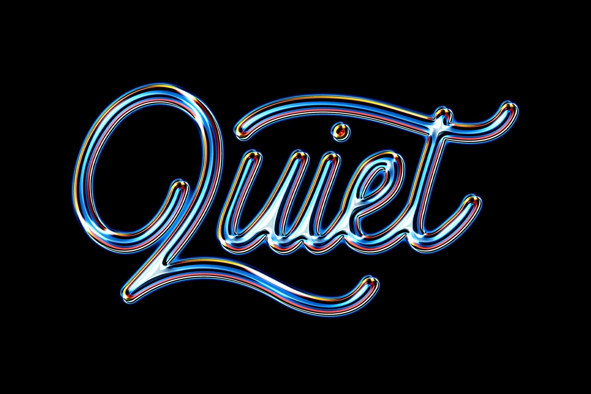 This effect delivers the look of polished chrome under artificial light, complete with glossy reflections and edge highlights. A subtle RGB fringing adds depth, making the text feel alive with energy. The result is a sleek, futuristic finish that feels both modern and nostalgic, recalling sci-fi user interfaces and 80s-inspired neon aesthetics.