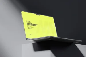 Showcase your UI/UX designs, app interfaces, and branding projects with the Free MacBook Pro Mockup in Dark. This high-resolution mockup (4500x3000px) features isolated shadows and a customizable background, allowing you to create a dramatic and professional presentation.