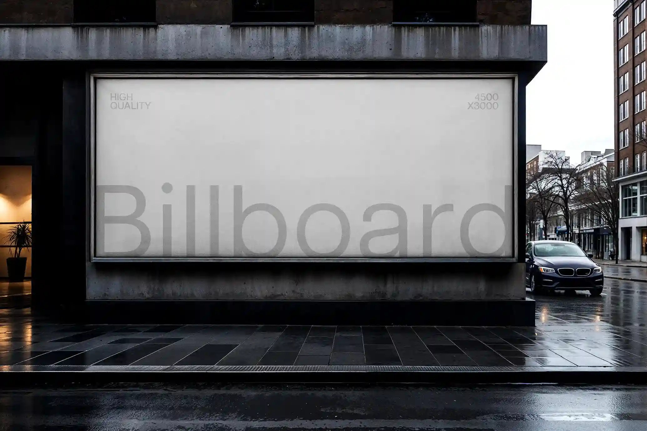 Perfect for showcasing marketing campaigns, movie posters, event announcements, or brand promotions, this Modern billboard mockup creates an immersive setting that feels authentic and visually compelling. The subtle reflections on the damp pavement add depth and realism, while the isolated billboard area ensures your design stays front and center.