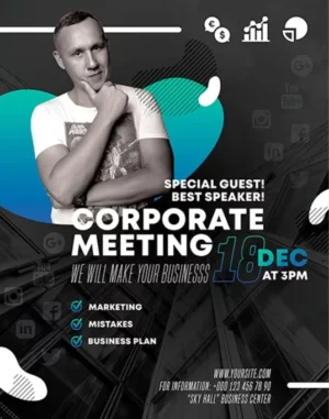 Easily modify this corporate meeting flyer to match your brand identity and event details. Whether for a business seminar or networking event, this template is a perfect fit.