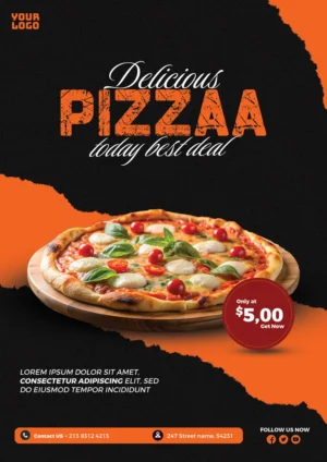The template comes in a fully layered PSD file. Every element is customizable. Change text, colors, images, and layout to match your pizza brand. You don’t need advanced skills to edit it—just open the file in Photoshop and start designing.