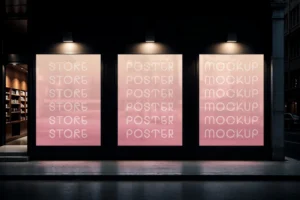 This free night glowing storefront posters mockup is an essential tool for designers looking to build atmosphere and storytelling into their visuals. With its authentic urban night scene, detailed textures, and realistic light effects, it adds a sense of place and professionalism that ordinary mockups just can’t match.