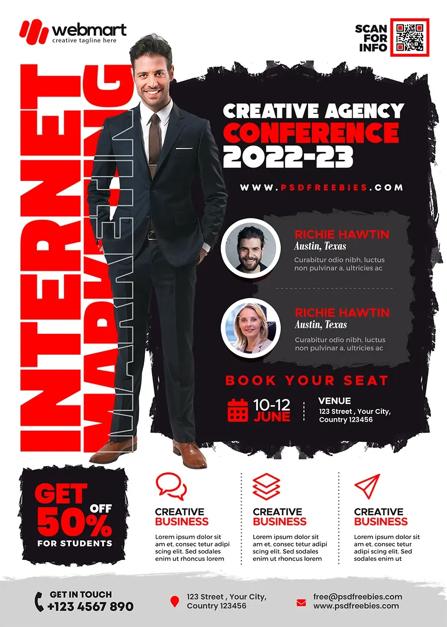 Elevate your seminar promotions with this Free Professional Seminar Promotional Flyer. Designed in A4 size, this PSD template is perfect for creating eye-catching flyers that effectively communicate your seminar details. Whether for print or digital distribution, this flyer is an essential tool for attracting attendees.
