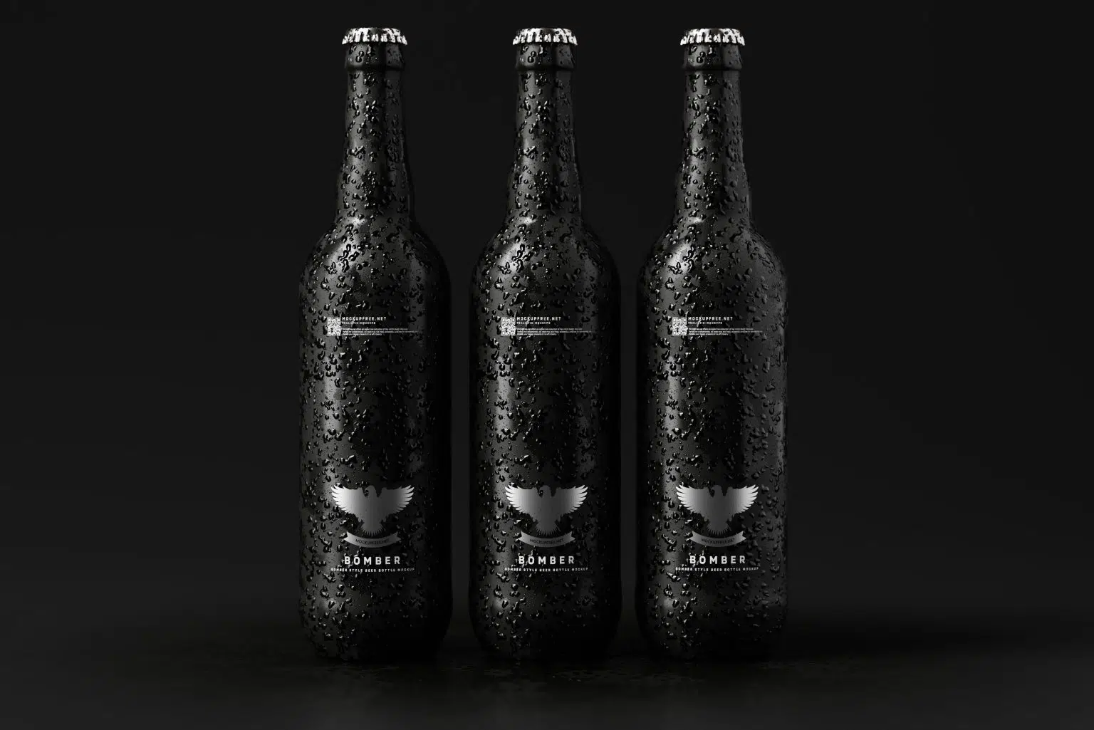 Present your craft beer branding and beverage label designs in the most professional way possible with this Free Bomber Style Beer Bottle Mockup Set. This high-quality mockup collection features 10 realistic bomber-style beer bottles, each highlighting a large 22 oz (650ml) dark glass bottle with stunning visual details and cold water droplets for a refreshing, chilled effect.