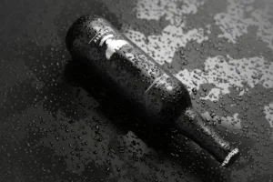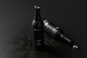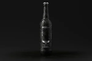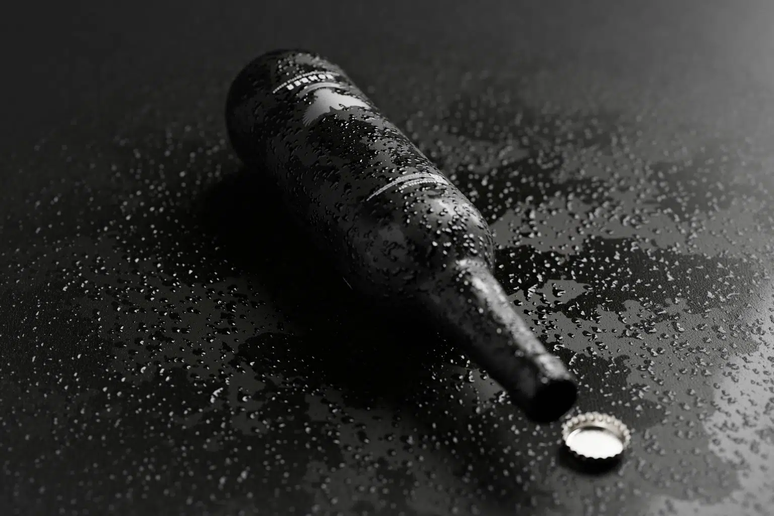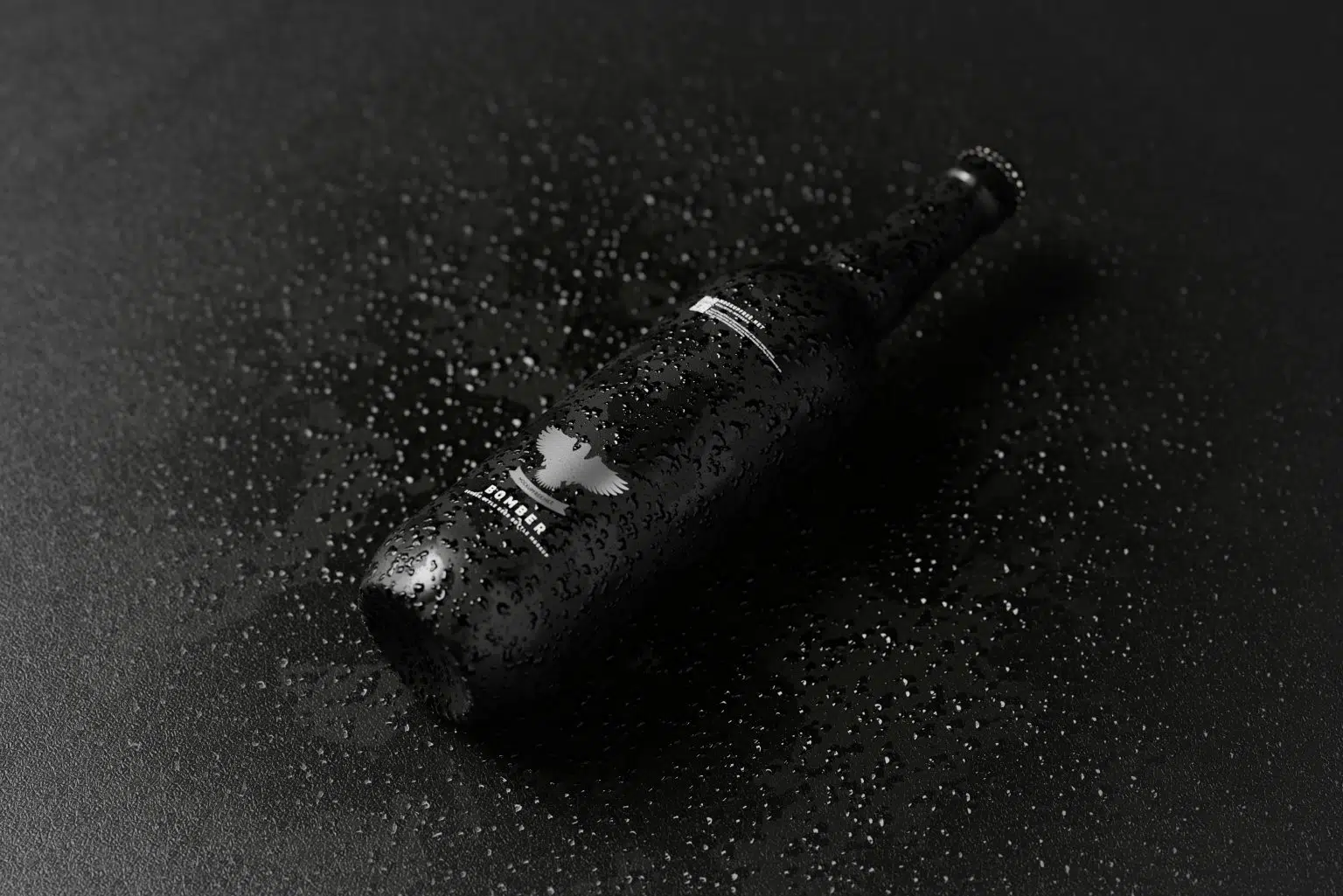 22 oz (650ml) dark glass bottles with realistic cold water droplet effects
