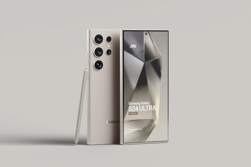 Showcase your Android UI designs with the Free Realistic Samsung Galaxy S24 Ultra Mockup. With a stunning resolution of 4500x3000px, this mockup is ideal for presenting your latest app designs and creating eye-catching promotional materials.
