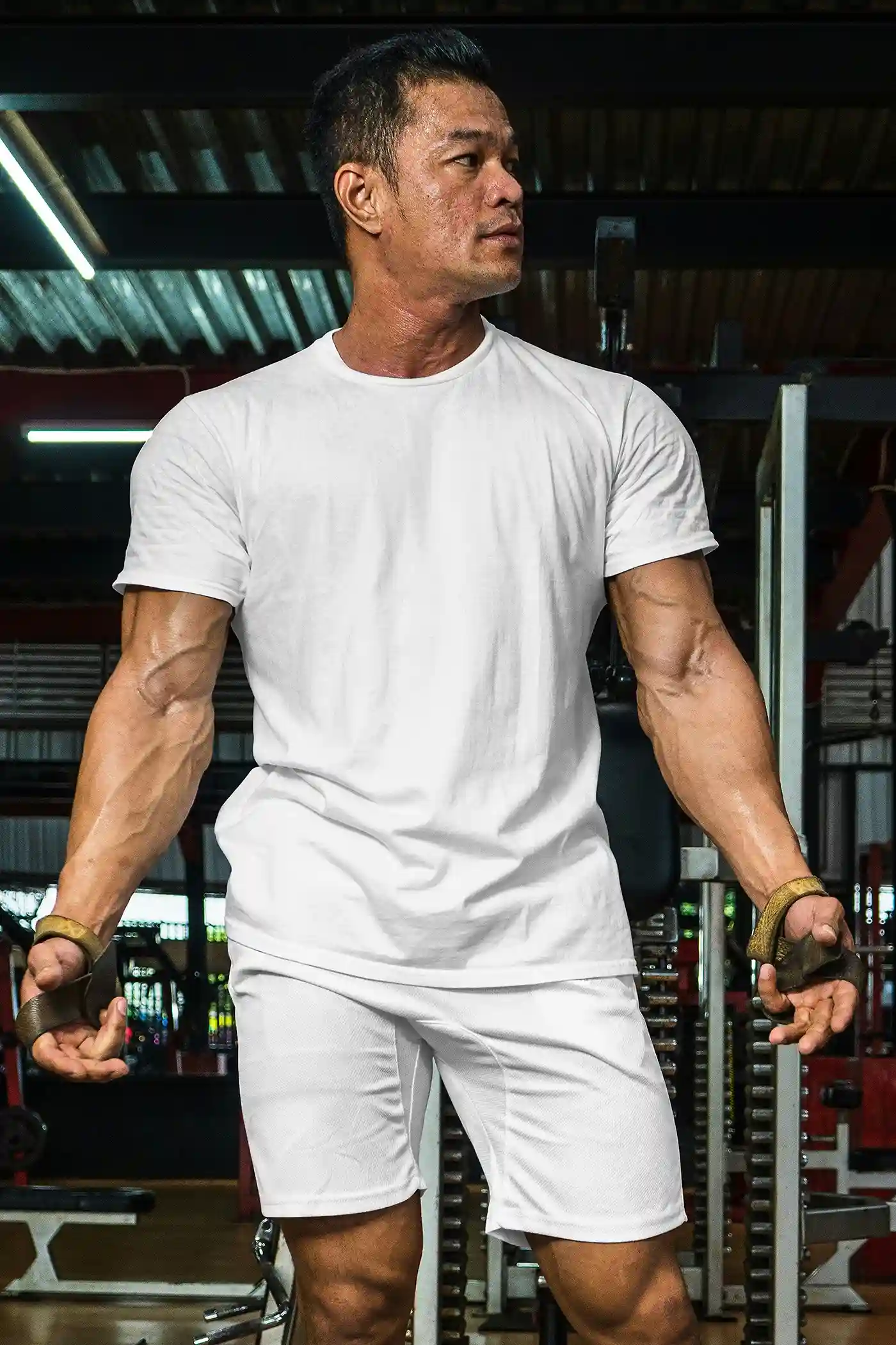 The realistic muscle definition of the model adds a rugged, high-impact feel that helps your design pop, especially for target audiences in fitness, bodybuilding, or active lifestyle niches. Whether you’re creating t-shirts for a personal training brand, a streetwear drop, or a high-intensity workout brand, this mockup brings that “pro athlete” feel to your designs.