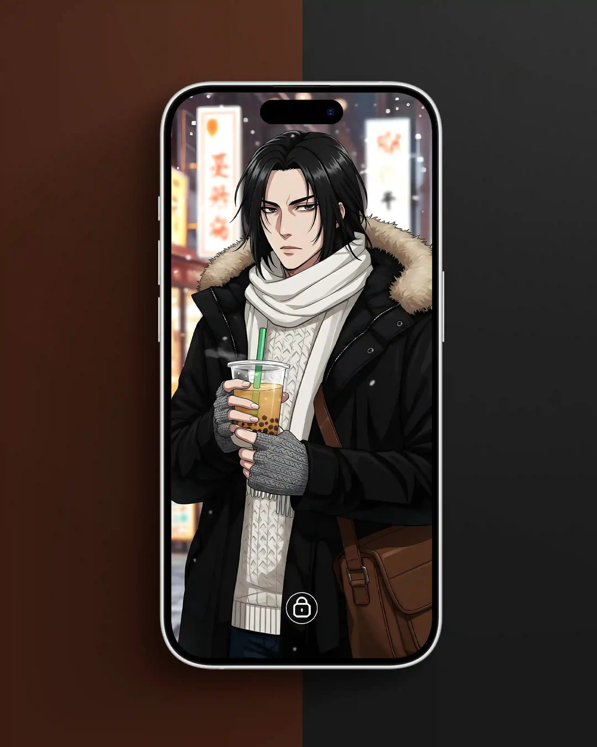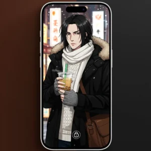Embrace the winter vibe with this Winter Arc Anime Wallpaper, featuring a beautifully drawn anime character holding a warm cup of coffee. This high-quality iPhone wallpaper captures a cozy and peaceful atmosphere, making it perfect for anime fans who love detailed artwork and winter aesthetics.
