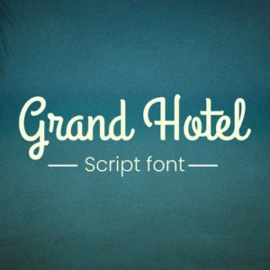 Its connected letterforms create a graceful rhythm that feels artistic, informal, and effortlessly chic. The condensed, upright style makes it highly versatile for modern projects while maintaining a nostalgic flair. Whether you’re designing a bakery logo, a cozy cafe menu, or holiday-themed greeting cards, Grand Hotel delivers a welcoming, handwritten warmth that feels authentic and polished.