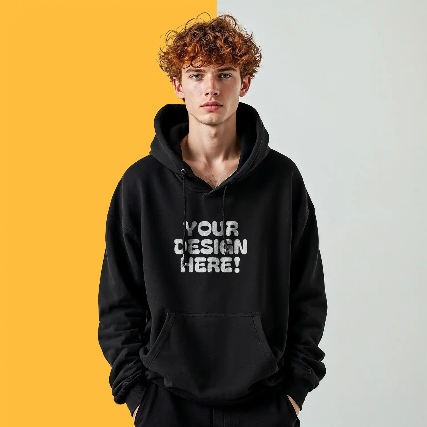 • Realistic Presentation: Showcase your hoodie designs on a handsome male model with a professional, high-quality look.