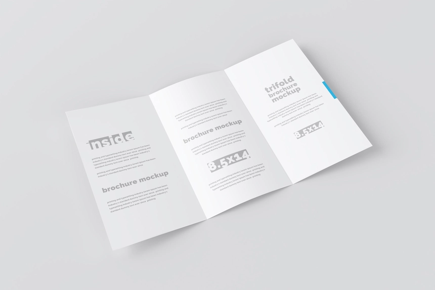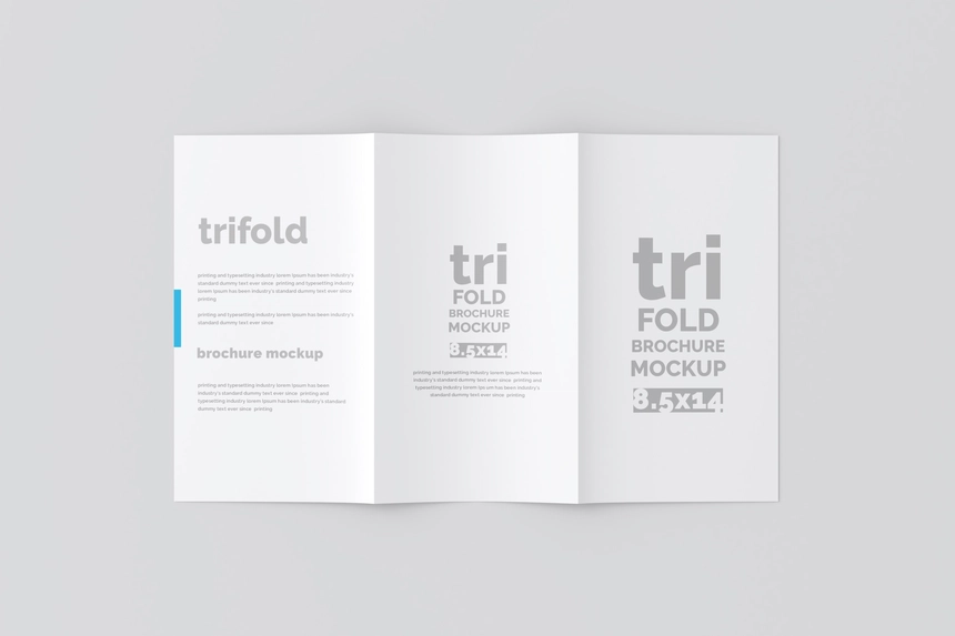 Showcase your designs with our Professional Trifold Brochure Mockup. This set includes three high-quality PSD files, featuring a 14×8.5 inch trifold brochure layout, perfect for presenting marketing materials, product information, or company profiles in a stylish and professional manner.