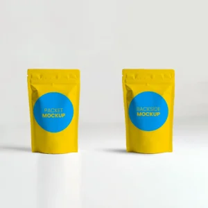 The mockup provides a realistic representation of a food packet, capturing the texture, gloss, and shadows with incredible attention to detail. The dual-sided view allows you to demonstrate not just the front design but also the back, where nutritional information, ingredients, or branding elements can shine.