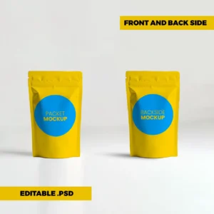 Showcase your food product designs with this Realistic Food Packaging Mockup, a high-quality PSD template designed for professional and versatile presentations. This mockup features a food packet displayed from both the front and back, offering a complete view of your design. Whether you’re a packaging designer, a food brand, or a marketer, this mockup is the perfect tool to highlight your creativity and bring your product concepts to life.