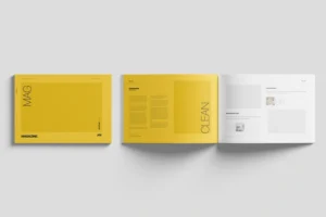 • Realistic A4 Landscape Magazine Mockup for professional presentations.
