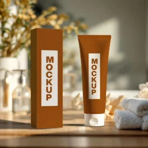 The mockup includes both a rectangular box and a sleek tube, offering a complete solution for skincare packaging design. With its easily customizable features, you can tailor every detail to align with your brand. Change colors, add your logo, and adjust designs with ease to create a visually stunning representation of your product packaging.