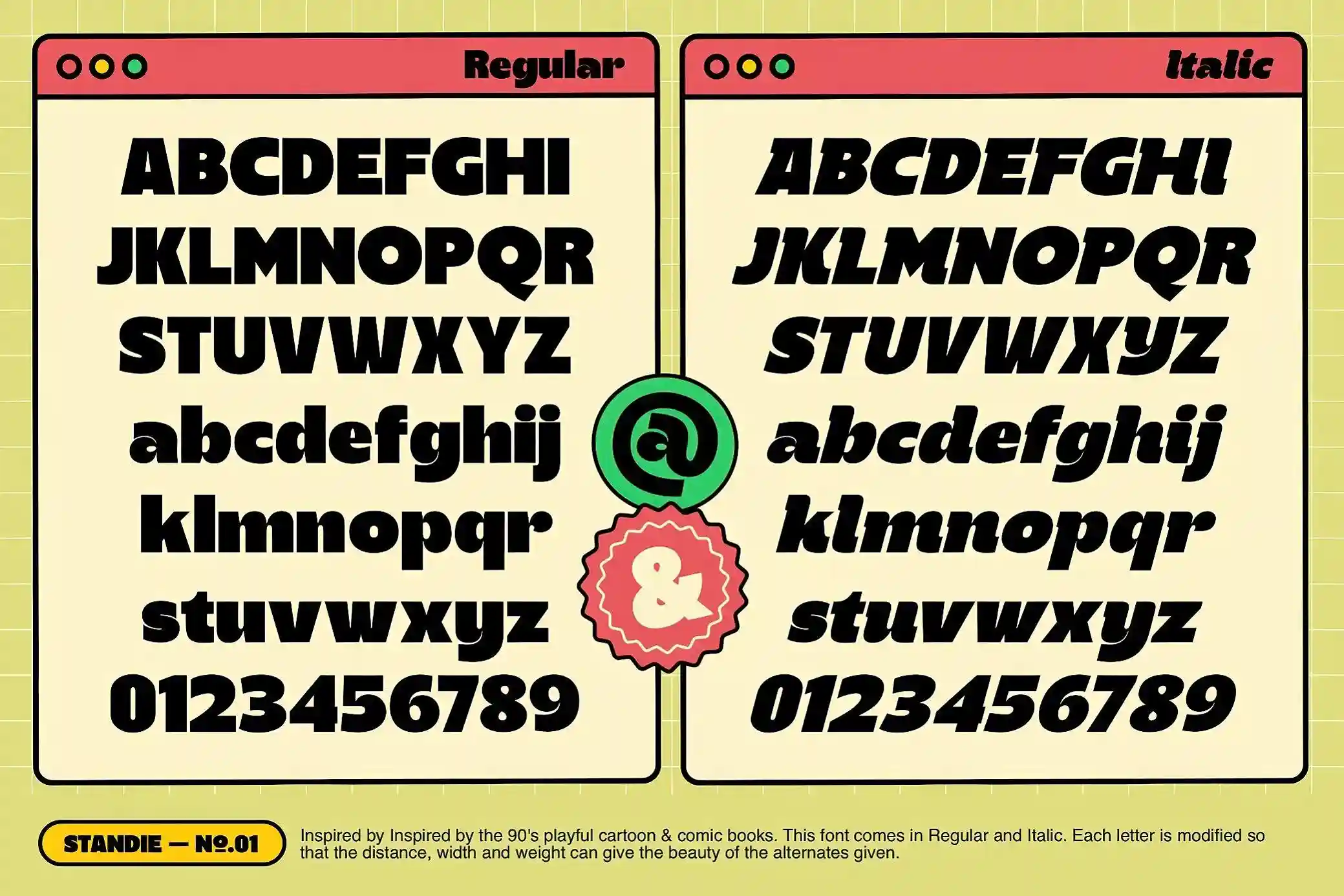 With its bold personality and versatile features, Standie is the perfect choice for designers looking to create playful and engaging visuals. Download now and make your typography stand out!
