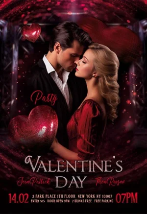 Set the mood for your Valentine’s Day celebration with this Valentine’s Day Party Flyer PSD Template, a stunning and fully customizable design perfect for romantic events, parties, or promotions. Featuring elegant graphics and a love-themed layout, this flyer template is ideal for creating beautiful invitations or marketing materials that capture the spirit of Valentine’s Day.